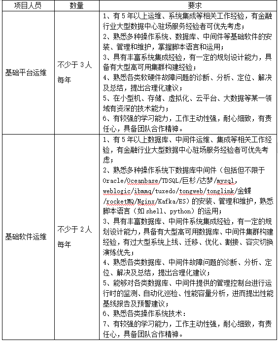 (3)运维服务一线技术人员要求