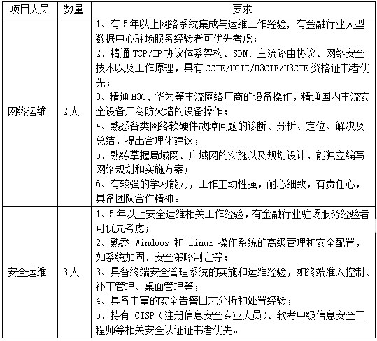 7.采购内容:为确保湖南农信数据中心网络、安全系统稳定高效运行,提升运维质量与效率,保障业务连续性,通过运维服务项目方式采购一线驻场运维服务、二线运维服务。