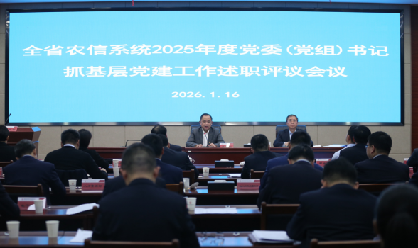 1月16日下午,省农信联社召开2025年度党委(党组)书记抓基层党建工作述职评议会议。省农信联社党委书记、理事长黄向阳同志出席会议并讲话,省农信联社领导刘胜军、谢扶民出席会议,省委金融工委组织处处长彭新理到会指导。