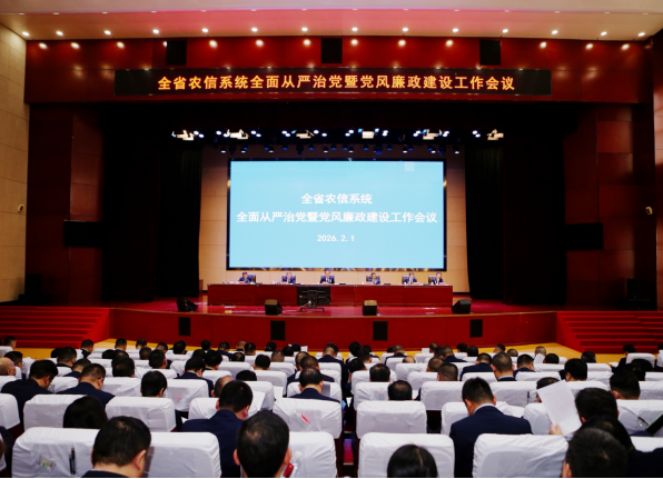 2月1日,省农信联社召开2026年全省农信系统全面从严治党暨党风廉政建设工作会议,全面贯彻党的二十大和二十届历次全会精神,落实二十届中央纪委五次全会、国务院第四次廉政工作会议、十二届省纪委六次全会、省政府廉政工作会议部署,总结2025年全省农信系统全面从严治党及党风廉政建设工作,研究部署2026年重点任务。党委书记、理事长黄向阳出席并讲话,党委委员、副主任徐达华主持,党委委员、纪委书记,驻社纪检监察组组长谢扶民作工作报告。在家党委班子成员王文芳、刘浩、何畅出席。