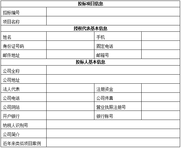 备注:本地或者外地不能来现场报名的投标人可以将“投标人基本情况表”完善后,连同“单位介绍信”、“标书款转账底单”一起扫描发送至,招标代理机构将及时办理报名登记。
