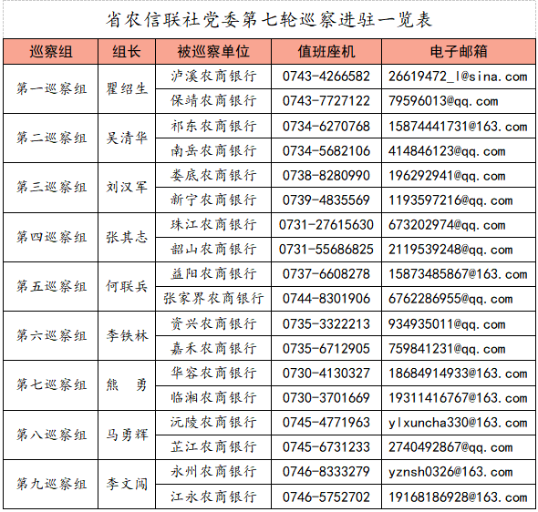 根据省农信联社党委第七轮巡察工作统一部署,本轮巡察对株洲珠江、韶山、南岳、祁东、娄底、新宁、华容、临湘、益阳、资兴、嘉禾、永州、江永、沅陵、芷江、张家界、泸溪、保靖等18家农商银行党委开展常规巡察。截至4月2日,各巡察组全部完成进驻。